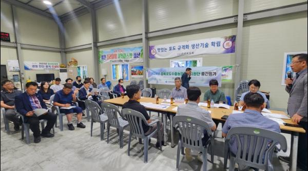 경상북도농업기술원은 21일 영천시 포도 수출작목반과 상주시 복숭아 수출작목반에서 경북 포도·복숭아 수출 확대를 위한 수출농업기술지원단 중간 평가회를 개최했다.