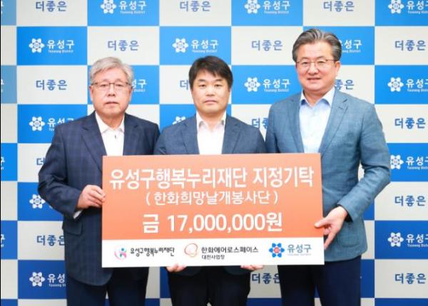 정용래 유성구청장은 “지역사회와 함께하는 한화에어로스페이스 대전사업장 직원 여러분께 감사드린다”며 “여러분의 사회공헌 활동은 다른 기업과 개인들에게도 훌륭한 모범이 될 것이다”라고 말했다.