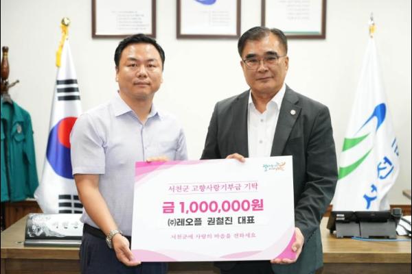 논산시에 소재한 ㈜레오플 권철진 대표가 지난 21일 서천군을 찾아 고향사랑기부금 100만원을 기탁했다.