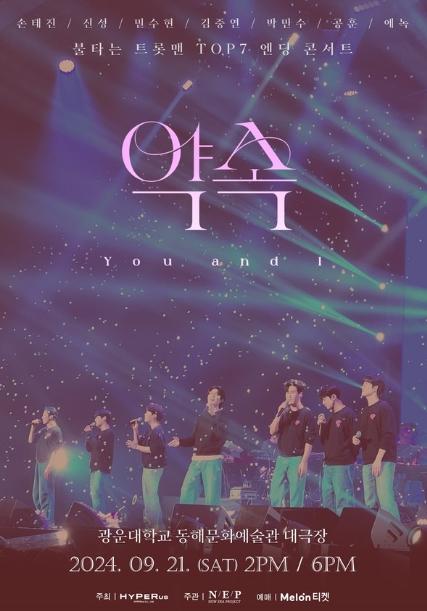'약속 : You and I'는 '불타는 트롯맨' TOP7이 18개월의 여정을 마무리하고 새로운 시작을 알리는 공연으로, '불타는 트롯맨'은 마지막 공연 개최 소식을 알리며 팬들의 열기를 끌어올리고 있다.