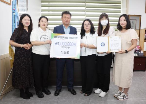 정읍시 지역 공동체 드림온이 22일 시청을 방문해 (재)정읍시민장학재단에 장학금 100만원을 기탁했다.