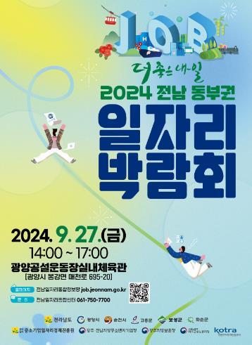 전라남도는 오는 9월 27일 광양 공설운동장 실내체육관에서 ‘2024 전남 동부권 일자리박람회’를 개최키로 하고, 참여 기업을 9월 4일까지 모집한다고 밝혔다.