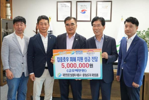 대한전문건설협회 세종시·충청남도회는 지난 22일 서천군청에 방문해 호우피해 주민을 위해 사용해달라며 성금 5백만원을 기탁했다.
