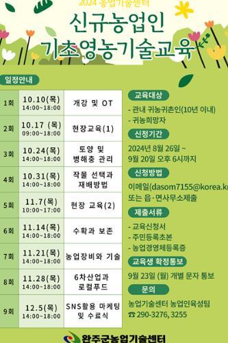 자세한 사항은 완주군 농업기술센터 홈페이지 교육정보를 참고하거나 농업인육성팀으로 문의하면 된다.
