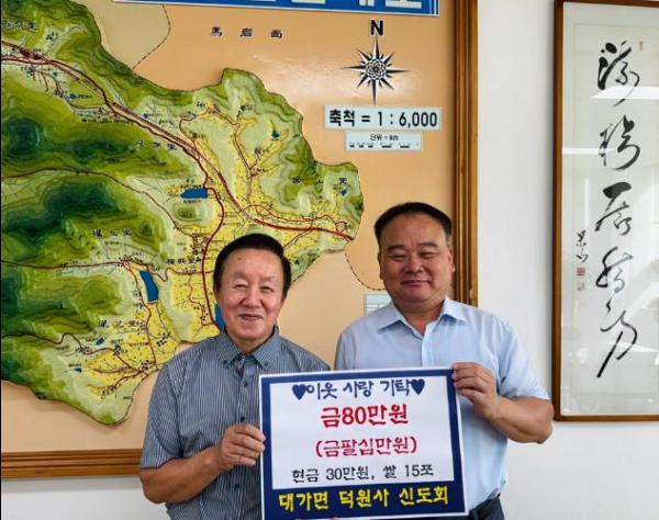 덕원사와 덕원사 신도회는 지난 23일 추석 명절을 맞아 지역 내 돌봄이 필요한 이웃들에게 전해달라며 대가면사무소에 현금 30만 원과 쌀 10kg짜리 15포를 전달했다.