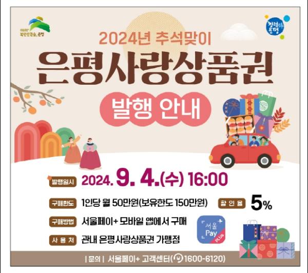 이번 추석 맞이 은평사랑상품권은 9월 4일 오후 4시부터 구매할 수 있다.