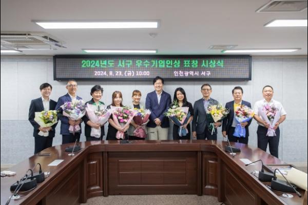 인천 서구가 23일 지역경제 활성화에 기여한 모범기업체 대표의 사기 진작을 위하여 2024년도 서구 우수기업인상 표창장을 수여했다.