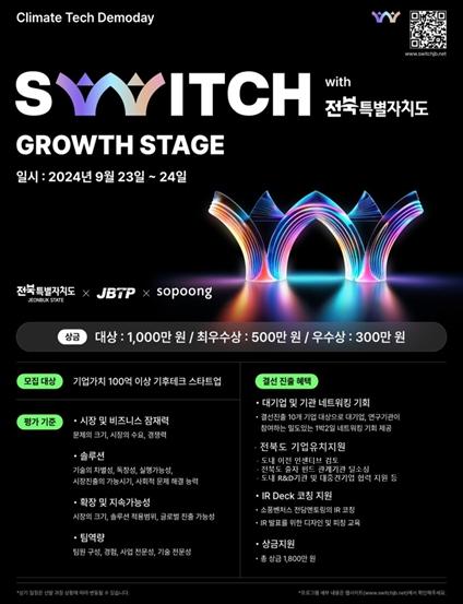 전북특별자치도는 기후테크산업 육성과 창업 활성화를 위해 기후스타트업 경진대회 ‘SWITCH(전환)’를 개최한다.