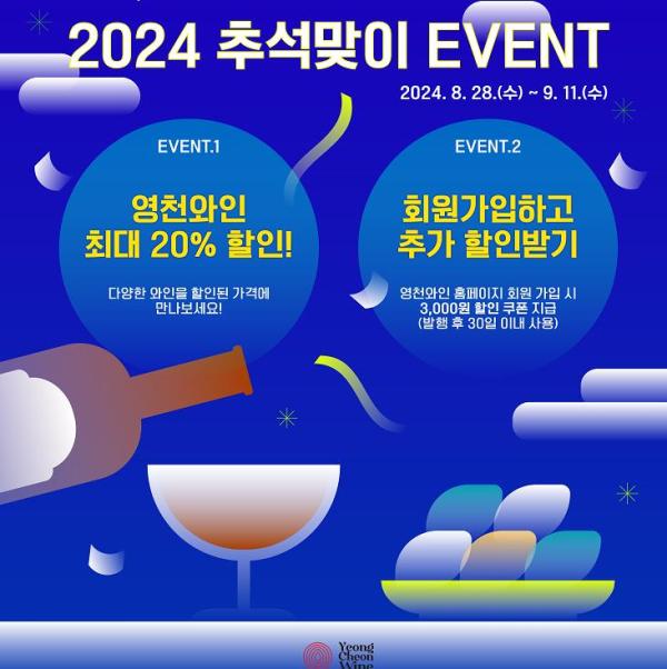 영천시는 민족 대명절인 한가위를 맞아 오는 28일부터 다음달 11일까지 15일간 영천와인 온라인 쇼핑몰에서 특별 할인행사를 진행한다고 밝혔다.