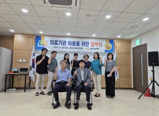 충주시 주덕읍에서 송원요양병원과 송원요양원, 송원장례문화원을 운영하고 있는 송원의료재단과 충주문화관광재단은 26일 의료기관 이용을 위한 업무협약을 체결했다고 밝혔다. ? 이날 협약 체결에 참여한 충주문화관광재단 백인욱 이사장은 “재단 임직원과 회원들에게 필요할 때 의료 혜택이 돌아갈 수 있도록 노력하겠다”고 소감을 밝히고, 송원의료재단 권중호 본부장은 “양질의 의료 서비스를 제공하기 위해 최선을 다하겠다.”고 말했다.