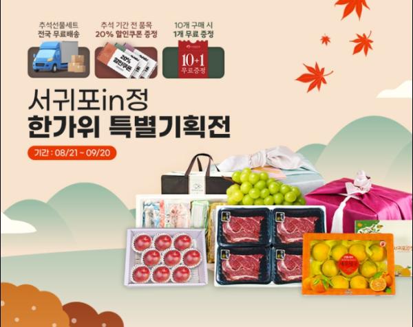 서귀포시가 운영하는 공식 온라인 쇼핑몰'서귀포in정'이 2024년 갑진년 한가위를 맞이하여 오는 9월 20일까지'2024년 한가위 선물 특별 기획전'을 진행한다.