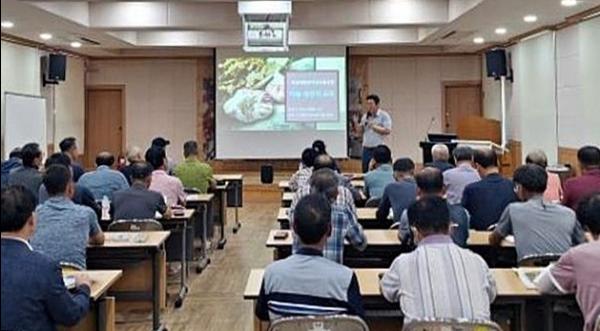 이날 교육은 홍산마늘 개발보급자인 권영석 박사가 강의를 맡았다.