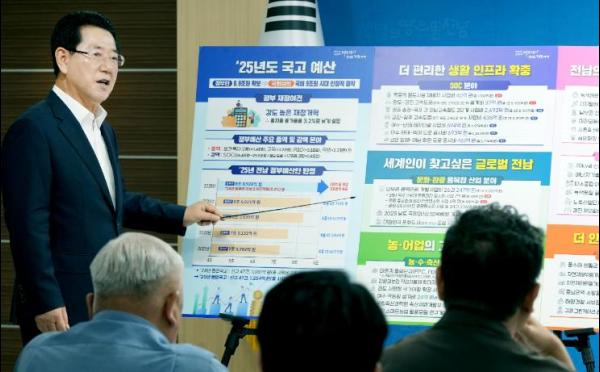 전라남도가 27일 국무회의를 거쳐 발표된 2025년 정부 예산안에 국비 8조 8천928억 원을 확보, 2년 연속 9조시대 달성 계기를 마련했다.