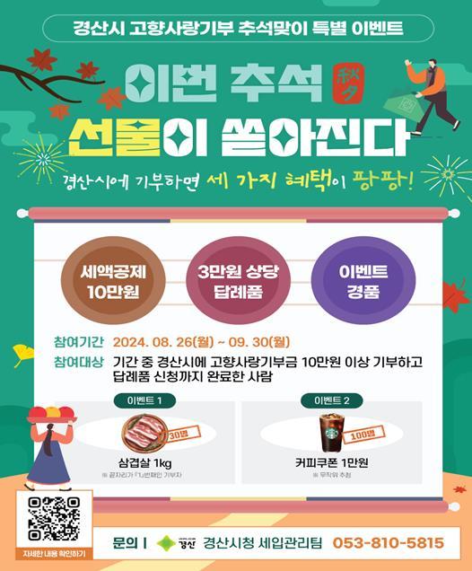 경산시는 추석 명절을 맞아 고향사랑기부제를 홍보하고 기부를 장려하기 위해 특별 이벤트를 진행한다.