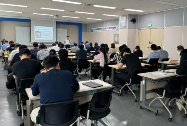 도내 중소기업의 RE100 대응 전략 수립 지원을 위해 경기지방중소벤처기업청 3층 중회의실에서 진행된 설명회에는 도내 수출 중소기업과 관련 기관 등의 관계자 40명이 참석했다.