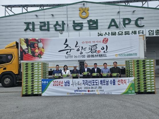 남원농산물공동브랜드 ‘춘향애인’ 상표로 수출하기로 협의하고, 지리산농협산지유통센터에서 3.3톤(1,488박스/1.5kg, 3kg)을 공동 선별해 27일 포도(캠벨) 수출 선적식을 가졌으며, 이번 캠벨포도 수출을 계기로 베트남뿐만 아니라 홍콩으로 샤인머스캣도 본격 수출할 계획이다.