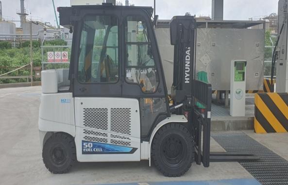 두산밥캣에서 만든 3톤급 수소지게차 4대, 에이치디(HD)현대사이트솔루션 5톤급 1대이다.