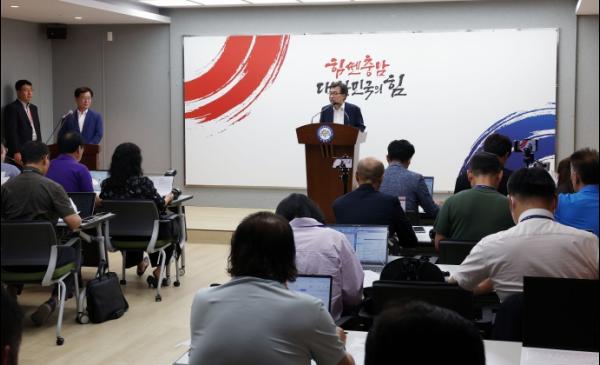 전형식 도 정무부지사는 28일 도청 프레스센터에서 기자회견을 열고 “다음 달 3일 국회에 제출되는 2025년 정부예산안에 충남 현안 사업 관련 국비 10조 7798억 원을 담아냈다”고 밝혔다.