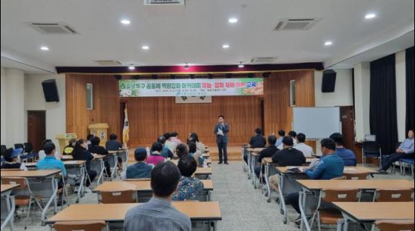 고령군은 2024년 8월 27일 화요일 10:00 농업기술센터 강당에서 순그린작목반을 대상으로 들녘특구 공동체 역량강화 아카데미 마늘·양파 재배이론 교육(1차)을 실시했다.