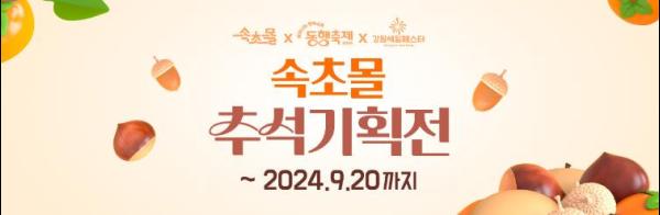속초시 공식 쇼핑몰 ‘속초몰'에서 민족 최대 명절인 추석을 맞이하여 모든 품목에 적용되는 할인쿠폰을 발행하는 등 추석맞이 행사를 전개한다.