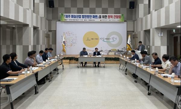 이번 정책간담회는 날이 갈수록 심화되는 이상기후 등에 의하여 매년 마늘재배 감소 등 쇠퇴해가는 제주 마늘산업의 지원 및 발전을 위한 도의회·행정·농협·농가 간 의견공유를 위한 자리로 마련됐다.