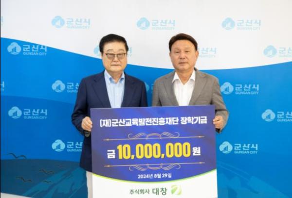 29일 국내 굴지의 황동 관련 제품을 생산하는 대창그룹은 군산시 교육발전에 써달라는 당부와 함께 올해도 군산교육발전진흥재단에 장학금 1천만원을 전달했다.