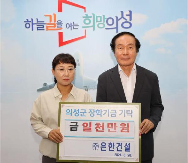 (재)의성군인재육성재단은 지난 28일 ㈜은한건설이 지역 인재육성을 위해 장학금 1,000만원을 기탁했다고 밝혔다.