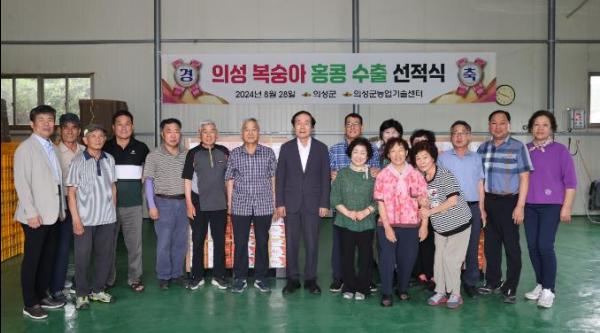 의성군은 지난 28일 대자연농업회사법인 수출단지 창고에서 복숭아 수출 선적 행사를 가졌다.