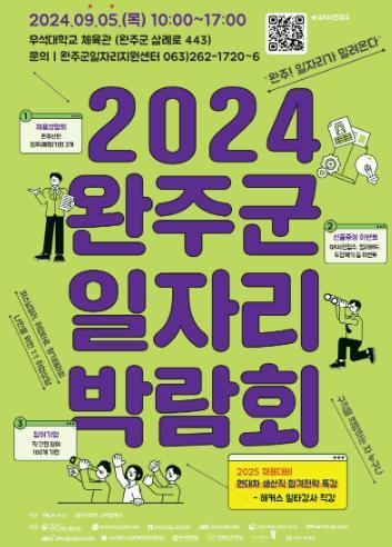 완주군이 9월 5일 오전 10시부터 우석대 체육관에서 ‘2024 완주군 일자리박람회’를 연다.