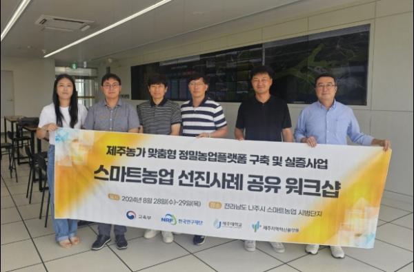제주대학교와 제주테크노파크, ㈜제우스로 구성된 제주농가 맞춤형 정밀농업플랫폼 구축 및 실증사업 컨소시엄이 지난 28일, 29일 양일간 전라남도 나주시 스마트농업 시범단지에서 스마트농업 선진사례 공유 워크숍을 개최했다.