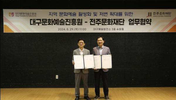 (재)대구문화예술진흥원과 전주문화재단은 지난 8월 29일 지역 문화예술 확산을 위한 업무 협약을 체결했다.