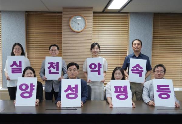 고용노동부 노사발전재단은 양성평등주간(9월 1일∼7일)을 맞아 9월 2일, 서울 마포구 공덕동 본부에서 김대환 사무총장 이하 본부장, 팀장 등 모든 관리자가 참여한 가운데 재단의 성평등 문화조성을 위한 ‘양성평등 실천 약속’ 선언을 했다.