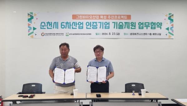 그 노력의 일환으로 순천시의 그린바이오산업을 선도하는 (재)순천바이오헬스케어연구센터는 순천시농촌융복합산업인증사업자협회(2024. 8. 23.) 및 (사)전남마을기업협의회(2024. 8. 27.)와 MOU를 체결했다.
