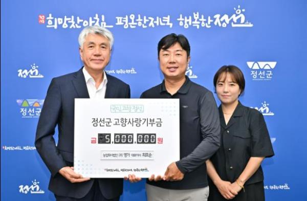 농업회사법인 ㈜명가 최호순 대표는 “고향인 정선에 감사의 뜻을 전하고 싶었는데 고향사랑기부제에 동참하게 되어 뜻깊게 생각한다”며 정선군을 방문해 500만 원을 기탁했다.