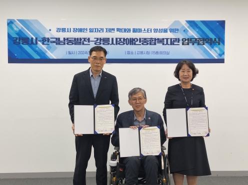 강릉시는 2일 오후 3시 시청 15층 회의실에서 한국남동발전, 강릉시장애인종합복지관과 함께 장애인 일자리 저변 확대와 휠마스터(이동 보조기기 사후관리사) 양성을 위한 업무협약을 체결했다.