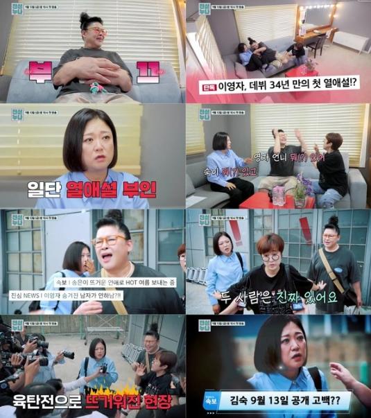 특히 열애 의혹을 극구 부인하면서도 발그레한 볼과 수줍은 표정으로 소녀 감성을 폭발시키는 이영자의 의외의 모습은 데뷔 34년 만에 처음으로 불거진 열애설을 한층 부추기기도. 이에 세 누나의 핑크빛 사생활의 전말에 궁금증이 치솟는다.