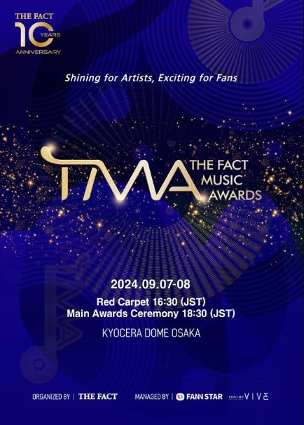 더팩트가 주최하고 팬앤스타와 필링바이브(FEELINGVIVE)가 주관하는 ‘2024 더팩트 뮤직 어워즈(2024 THE FACT MUSIC AWARDS, TMA)’가 오는 7일과 8일 일본 오사카 교세라 돔 오사카에서 개최된다.