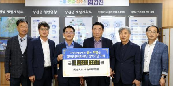 (사)한국시니어·실버 배구연맹 김용태 회장이 지난달 29일 100만원의 장학금을 강진군민장학재단에 기탁했다.