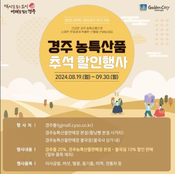 경주시가 민족 고유의 명절을 맞아 농축수산물 소비 촉진과 물가안정에 기여 하고자 특별 할인 이벤트를 선보인다.