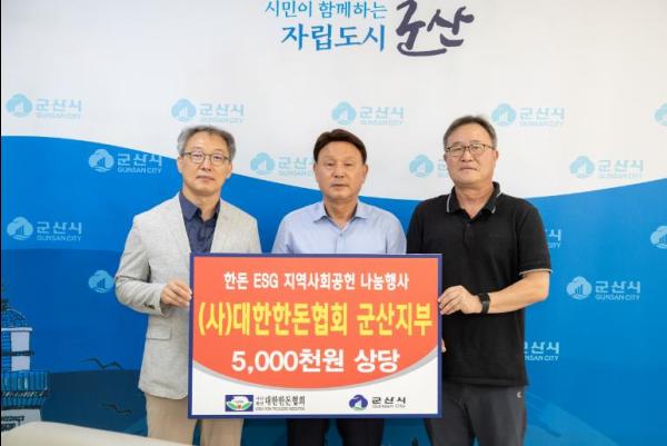 (사)대한한돈협회 군산지부는 군산시 돼지사육 20여 농가로 구성된 단체로 한돈 ESG 지역사회공헌 나눔의 하나로 지금까지 총 1억2백여만원의 한돈을 기부해 오고 있다.