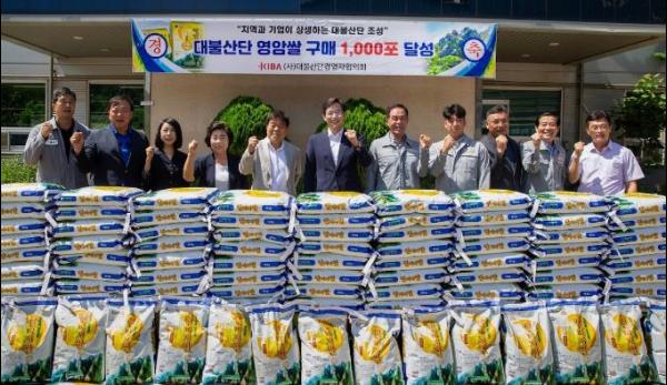 기업 구내식당에서 지역 쌀 소비하기, 기업 행사 경품에 지역 쌀 이용하기 등 소비촉진 운동을 추진한 결과 영암쌀 1,000포(20kg) 구매 실적을 달성하여 지난 8월 28일 대불산단 내 기업 구내식당에서 기념식을 개최했다.