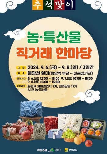 전라남도가 추석을 맞아 6일부터 3일간 서울 은평구 불광천에서 전남 농특산물을 홍보 판매하는 직거래 한마당 행사를 개최한다.