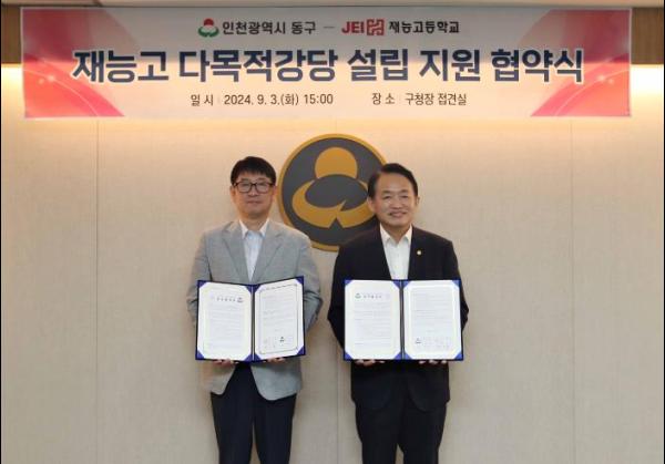 인천 동구는 지난 3일 재능고등학교와 ‘재능고 다목적강당 증축을 위한 지원 협약’을 체결했다고 밝혔다.