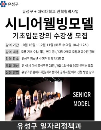 대전 유성구는 9월 30일까지 대덕대학교와 협력하여 진행하는 “시니어 웰빙모델” 프로그램 참가자를 모집한다.