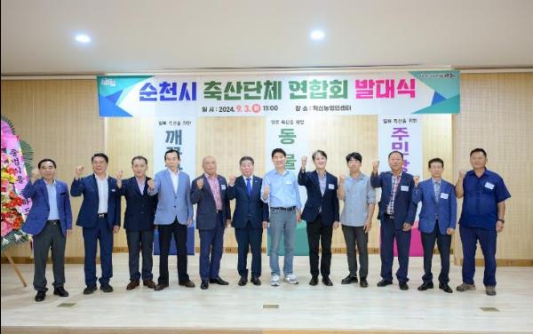 순천시는 지난 3일 순천시 혁신농업인센터에서 축산관련 6개 단체 대표와 회원 등 축산농가 150명이 참석한 가운데 순천시 축산단체 연합회 발대식이 개최됐다고 밝혔다.