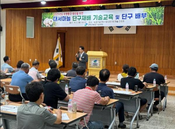 고령군농업기술센터는 9월 3일 14:00, 농업기술센터 2층 강당에서 증식농가 29명을 대상으로 “대서마늘 씨마늘 증식농가 단구보급 및 교육”을 실시했다.
