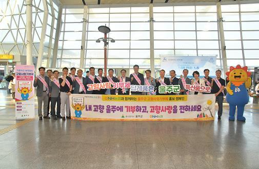 울산시 울주군이 추석을 앞두고 4일 KTX울산역에서 울주군 지역농협·울산축협·울산원협 및 농협은행 울주군지부와 합동으로 고향사랑기부제 홍보캠페인을 실시했다.