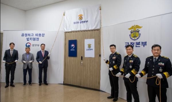 법무부는 2024년 9월 4일 16시 실시간 상황관리 및 전국 교정시설 총괄 지휘체계 구축을 위해 신설한 ‘교정본부 종합상황실’의 현판식을 개최했다.