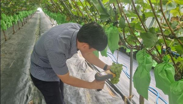 강진군에서는 추석을 앞두고 샤인머스켓 재배 농장에 방문해 고품질 포도 수확 및 출하를 위한 집중 점검을 실시했다.