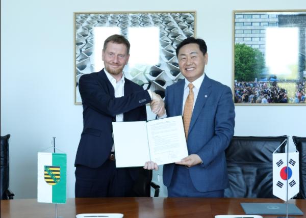 김관영 도지사와 미하엘 크레취머 작센 주총리가 참석한 가운데 진행된 체결식에서 양 단체장은 수소, 탄소, 문화, 농업 등 다양한 분야에서 협력을 강화해 실질적인 성과를 도출하자는 데 뜻을 모았다.